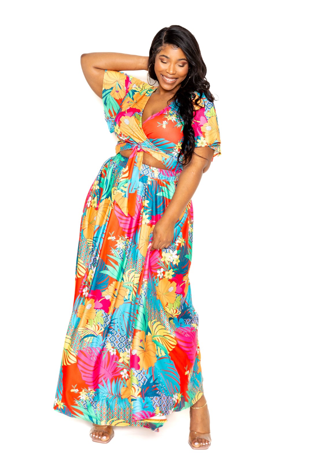 TROPICAL FLORAL MAXI SKIRT & TOP SET