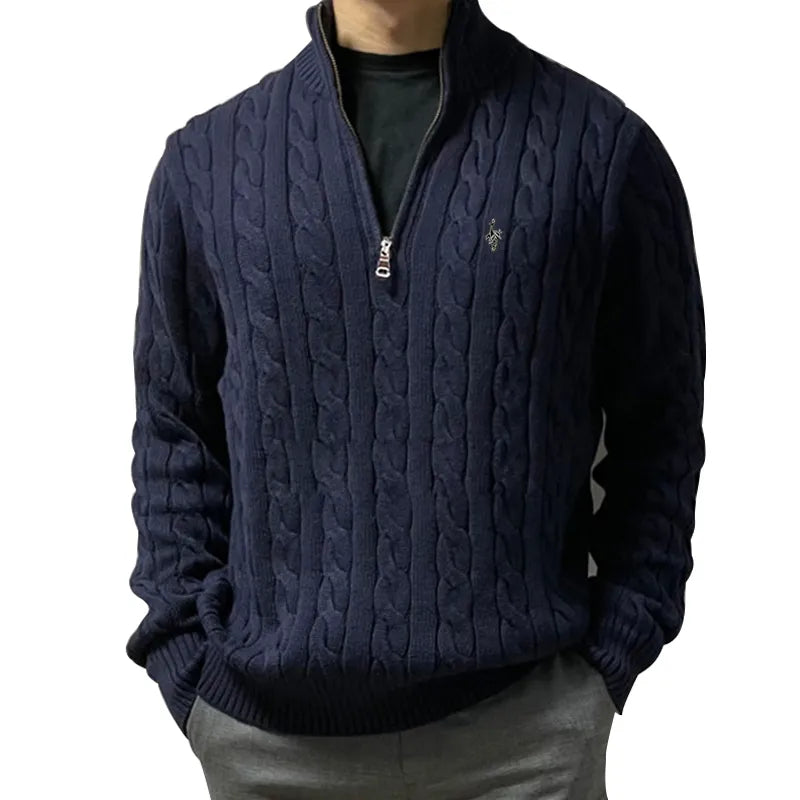 Brand Pullover Sweaters Mens Warm Knitted Sweater Solid Fashion Turtleneck Sweaters Half Zip 100% Cotton Winter Coat Casual 8509