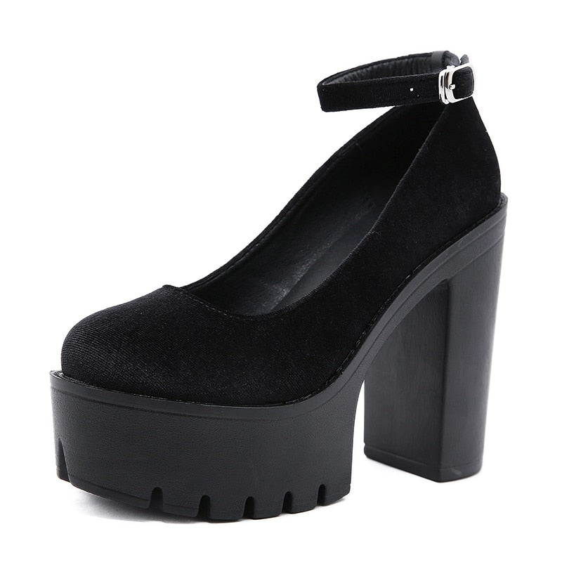 Gdgydh Spring Autumn Sexy Platform Women Pumps Shoes Woman Thick High Heels Shoes Female Black Rubber Sole Suede Platform Shoes