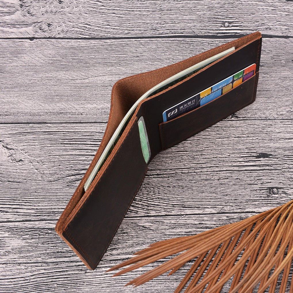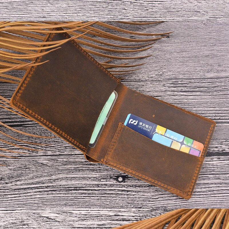 Handmade Personalised Leather Wallet for Men Slim Breif Men Wallets Short Vintage Retro Manmade Wallet Money Bags