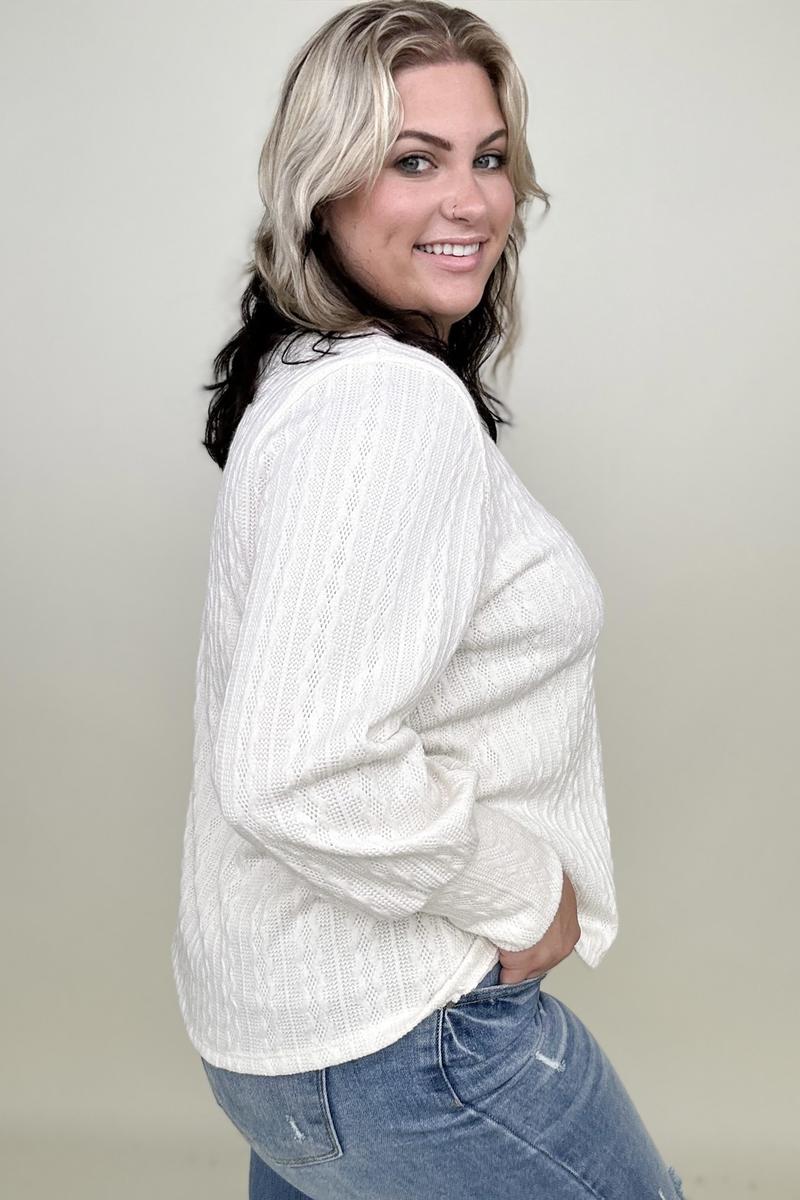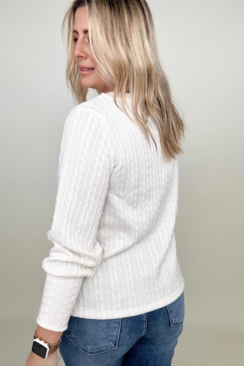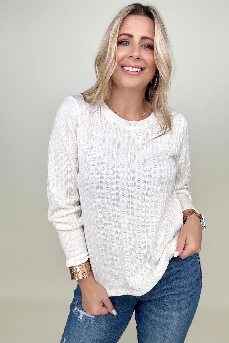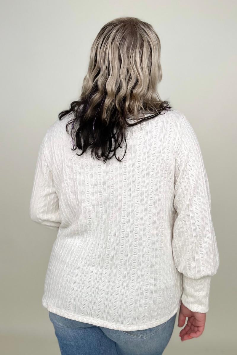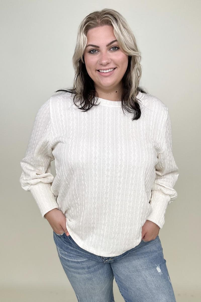 - Detail: Cuff Sleeve, Cable Knit Fabric