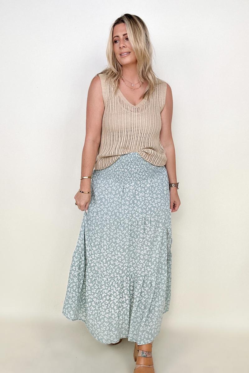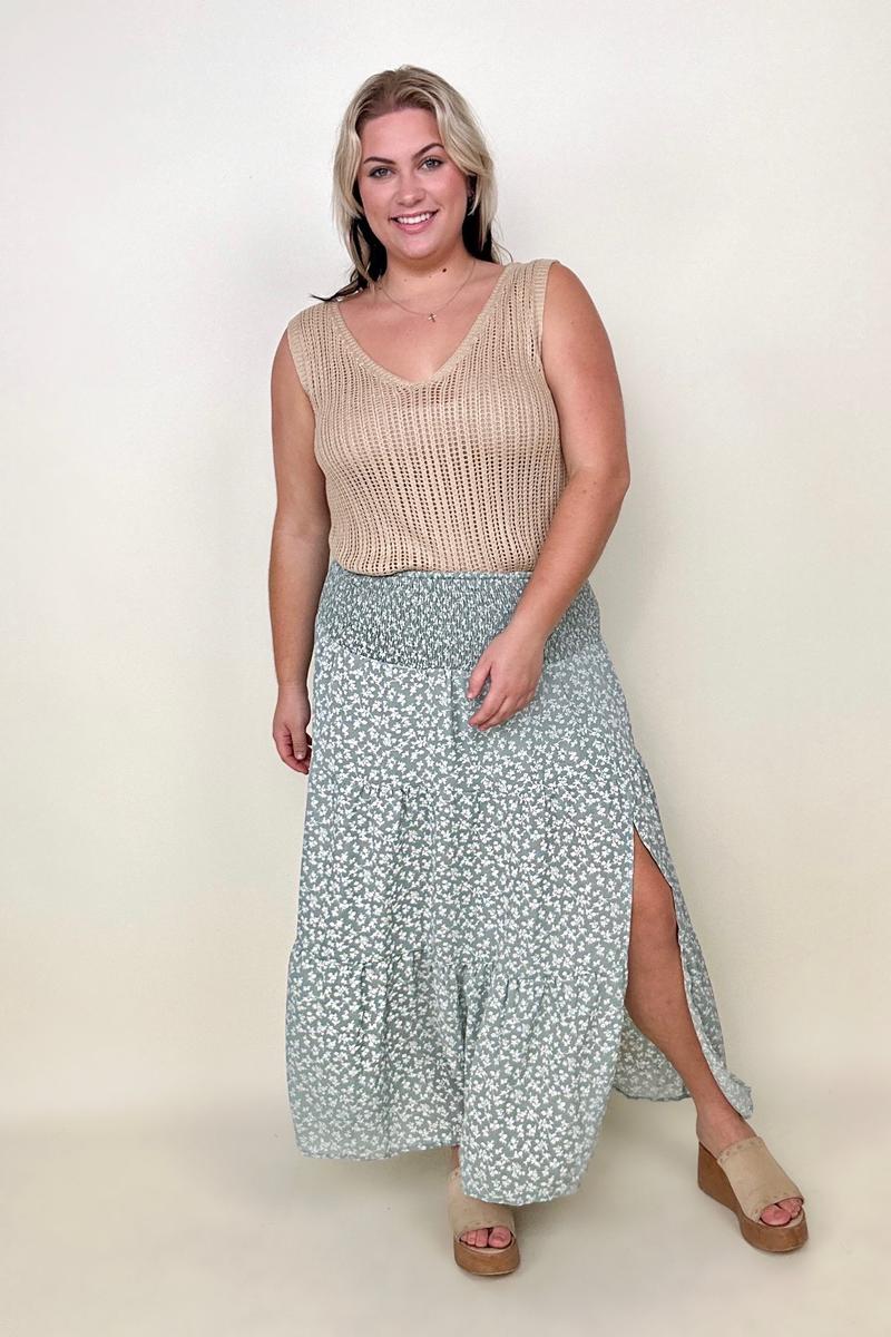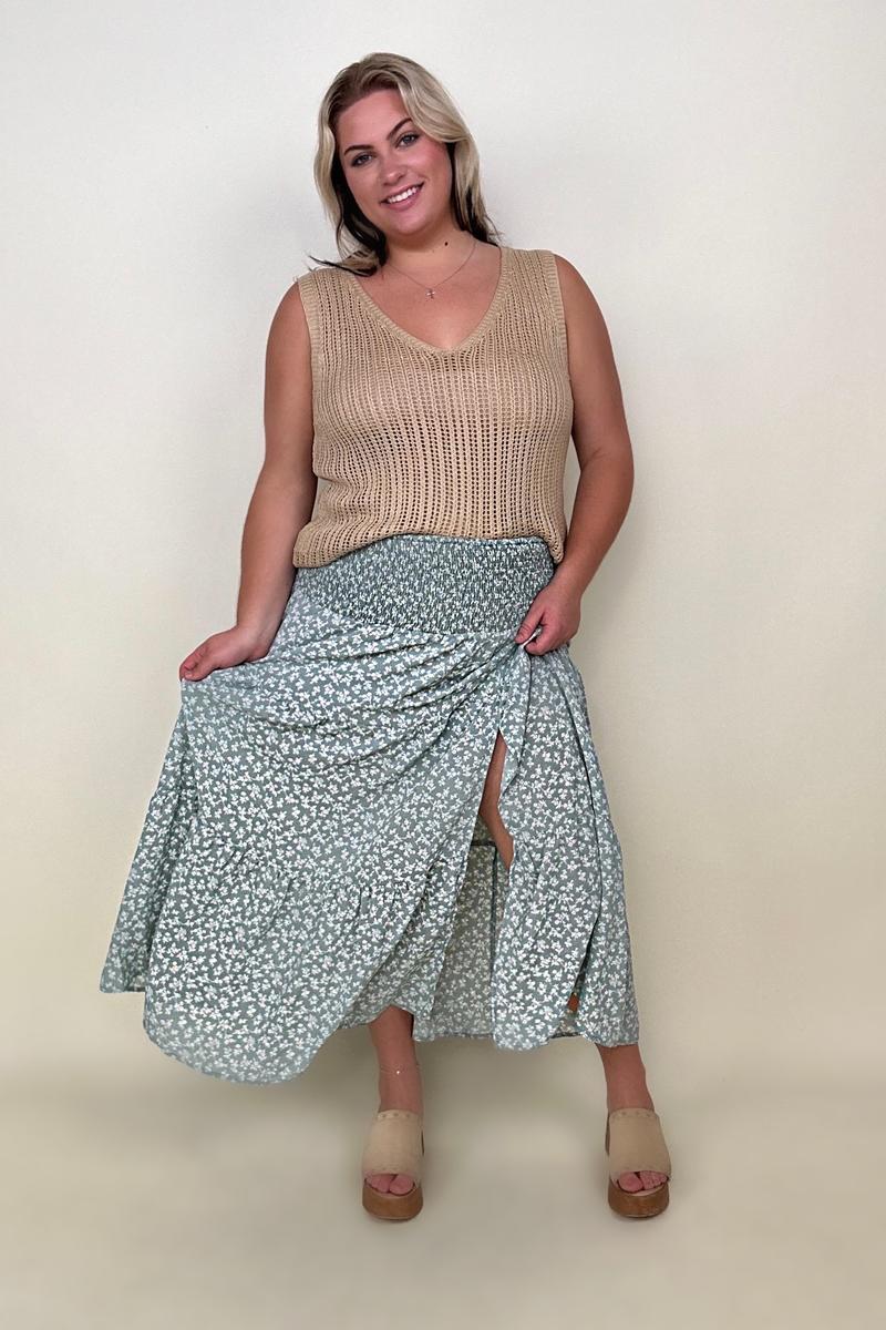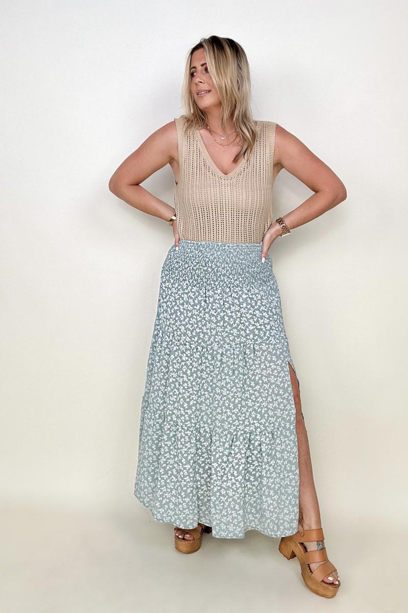 Heyson Smocked Waist Ditsy Floral Midi Skirt with Slit