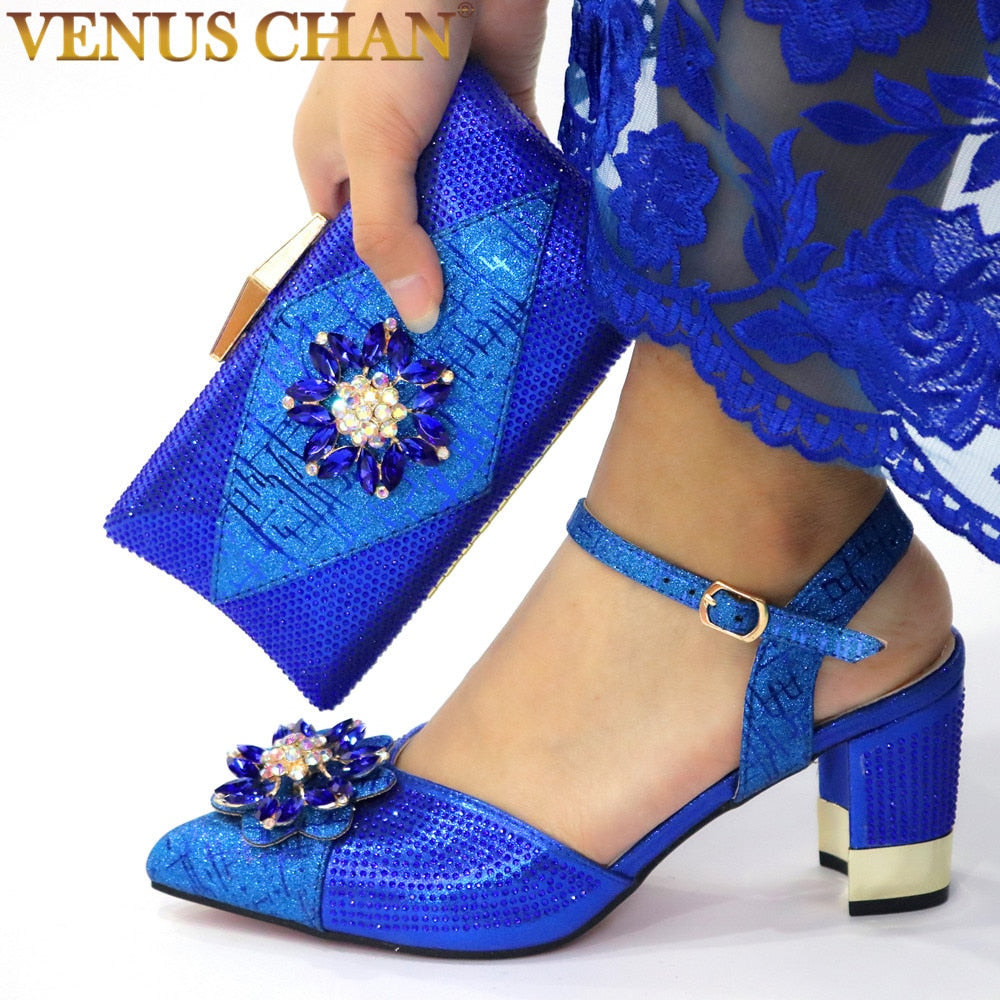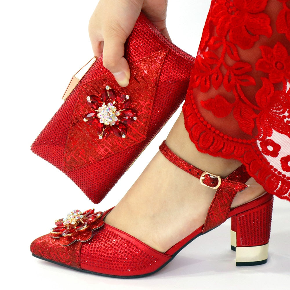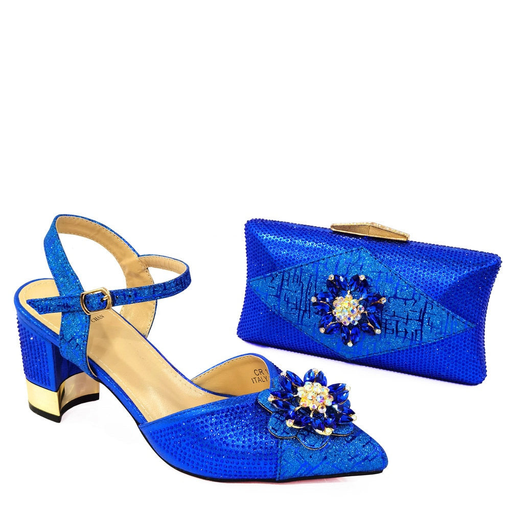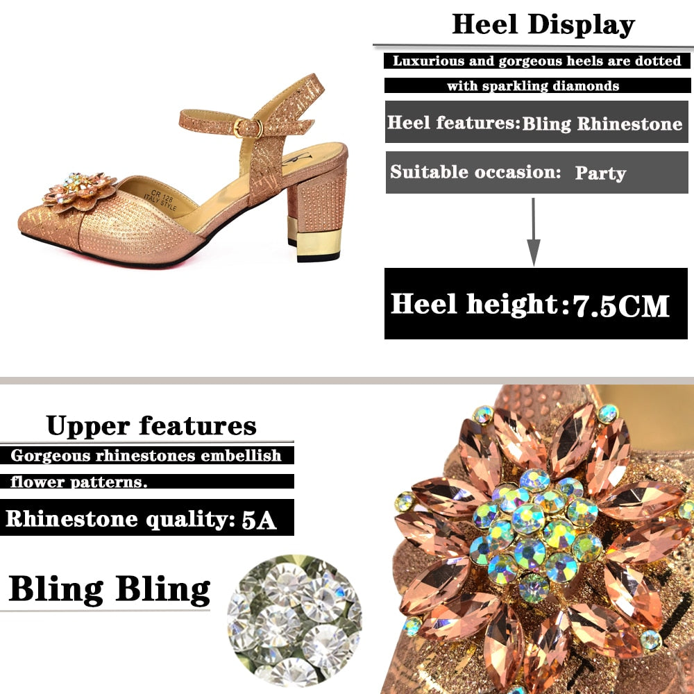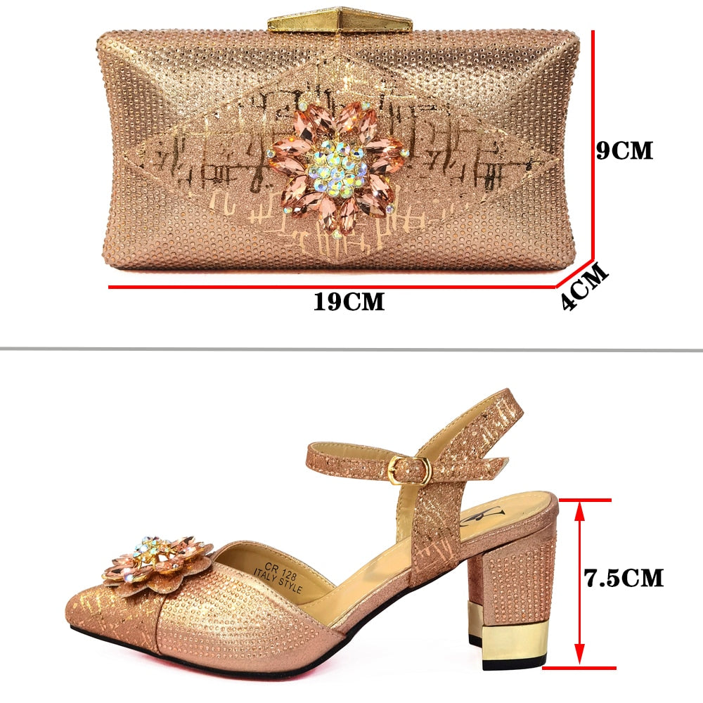 Italian Shoes and Bags to Match Shoes with Bag Set Decorated with Rhinestone Nigerian Women Wedding Shoes Set Wedding Party Bag