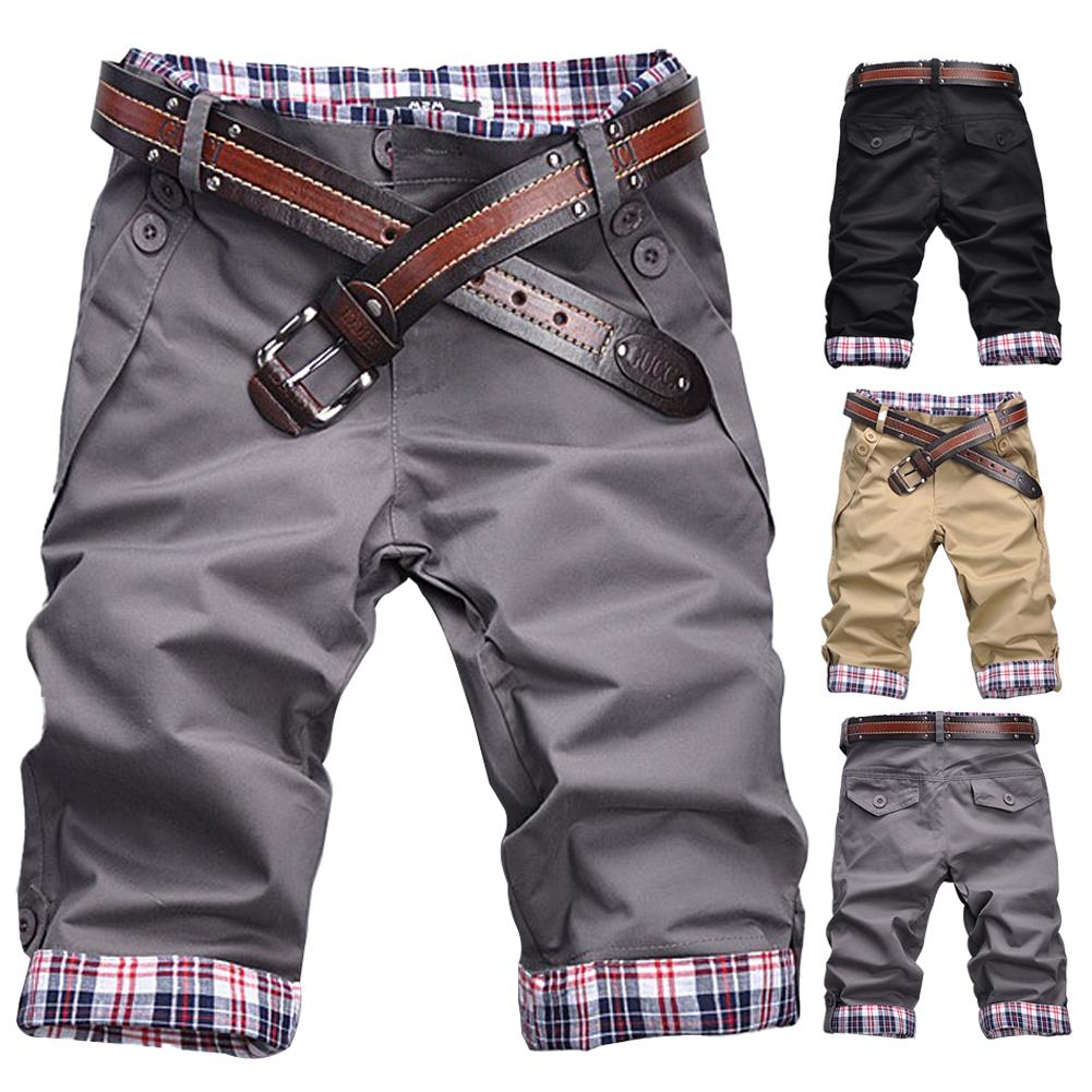 Men Casual Summer Plaid Patchwork Pockets Buttons Fifth Pants Loose Beach Shorts Male Summer Sports Workout Bottoms Clothing