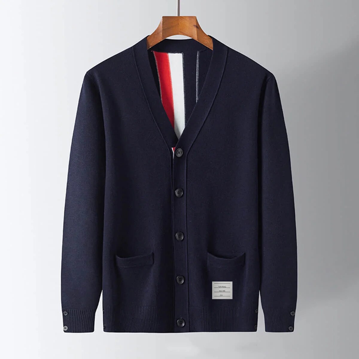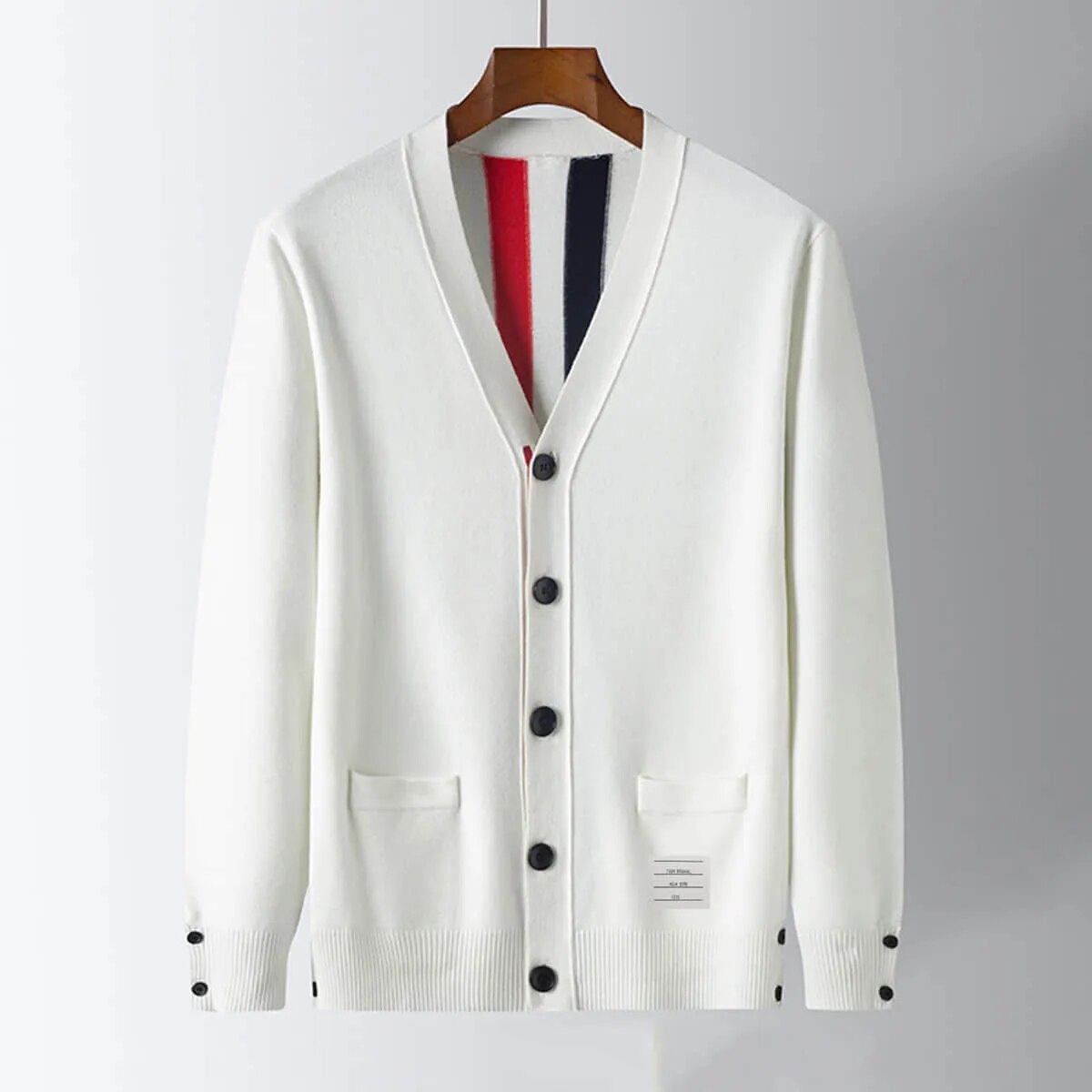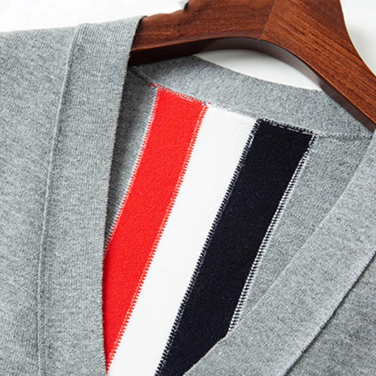 Mens Cardigan Luxury TB Fashion Brand Thom 3 Bar Funmix Jacquard Sweaters Males V-Neck Striped Street Fashion Wear Cardigan