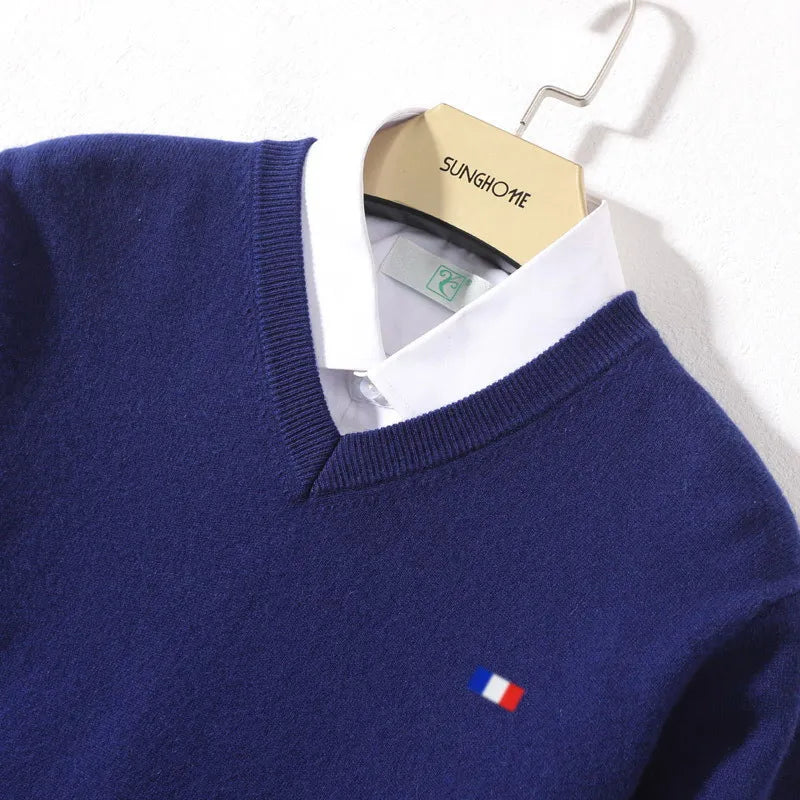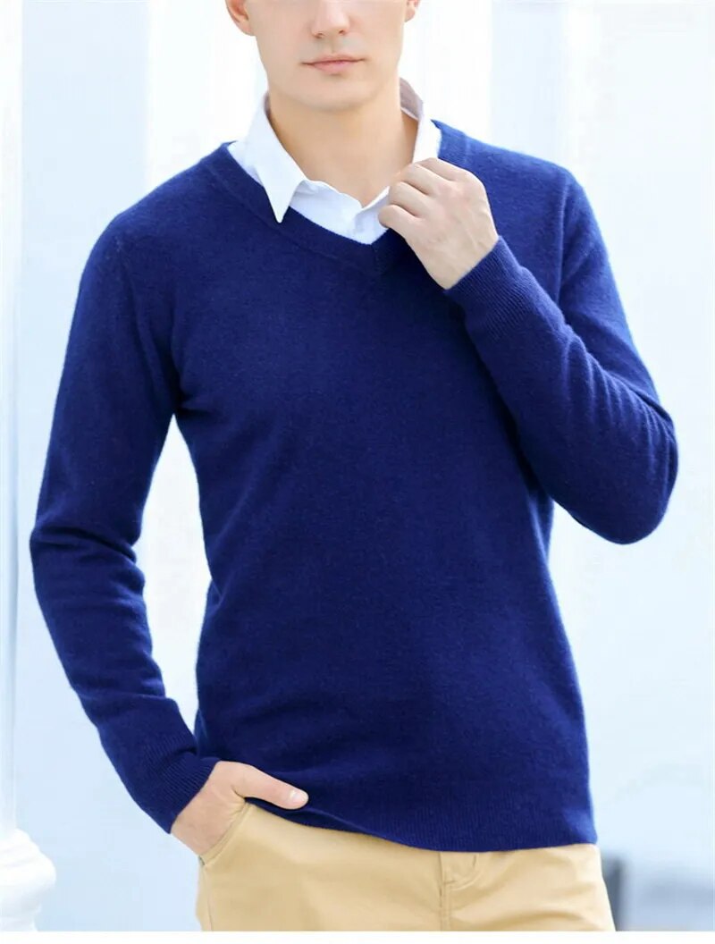 Men's Cashmere Cotton Blend Warm Pullovers Sweater V Neck Knit Winter New Tops Male Wool Knitwear Jumpers