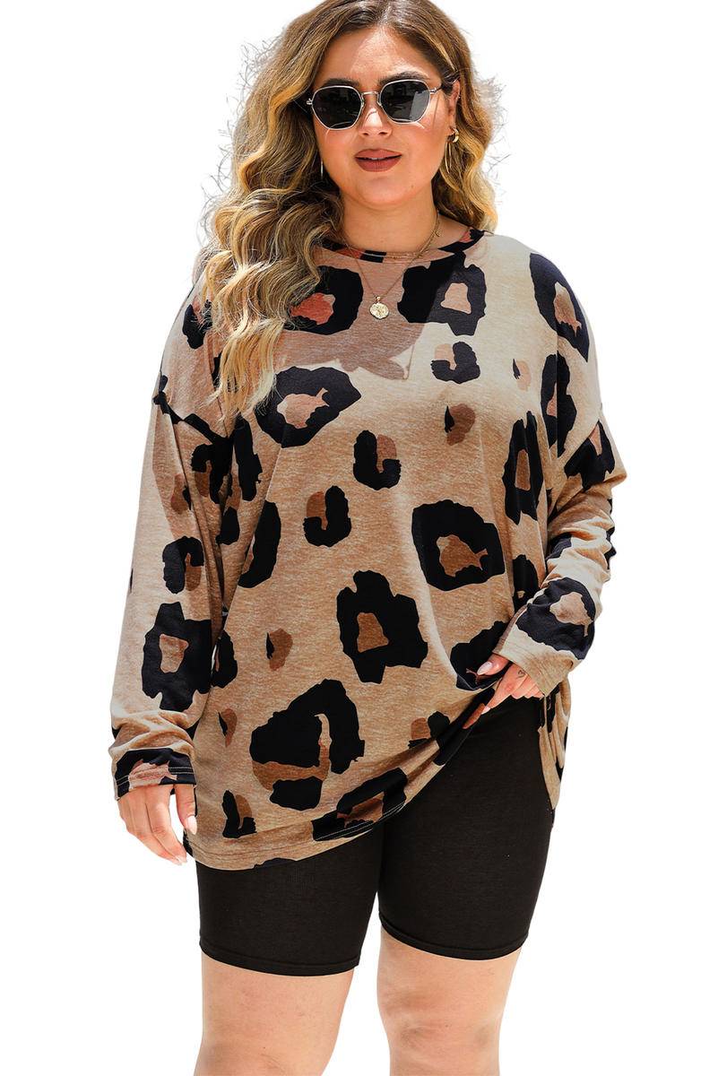 Multicolor Leopard Print Long Sleeve Plus Size T-Shirt