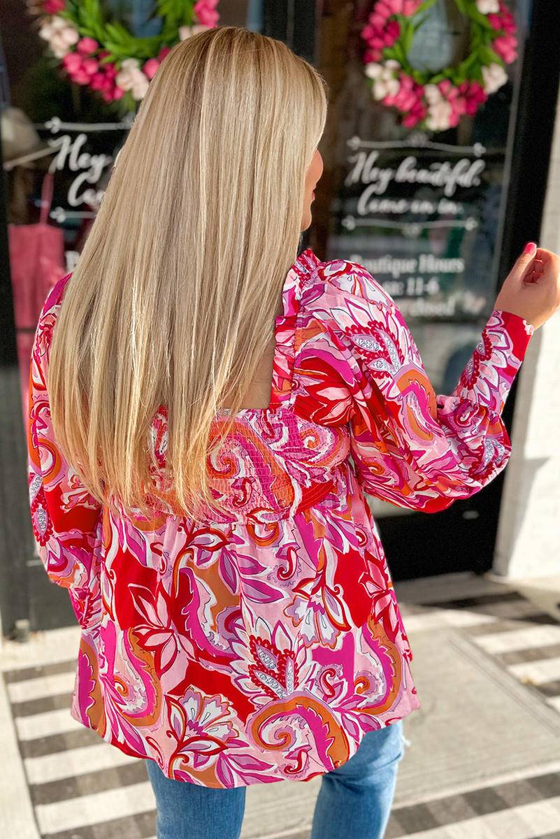 Plus Size Floral Sweetheart Neck Babydoll Blouse