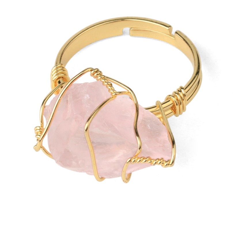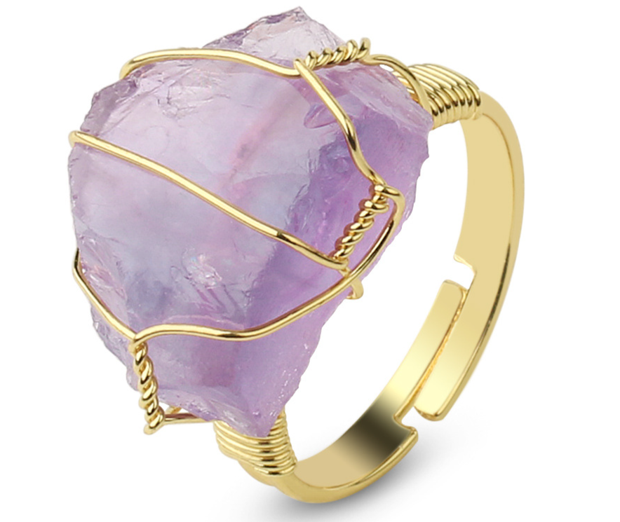 Retro Wire-Wrapping Natural Crystal Gold-Plated Cuff Ring