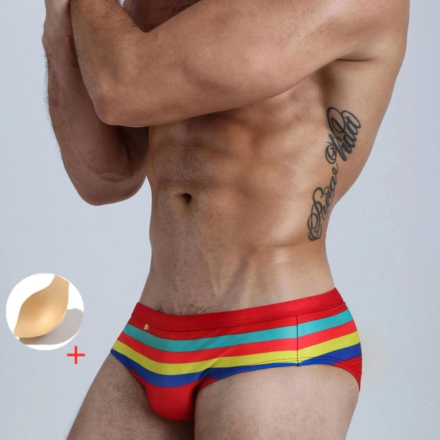 Sexy Rainbow Stripes Swimsuit Men Swimwear Push Up Pad Mens Swim Briefs Bikini Swimming Trunks For Man Beach Surf Bath Suit Wear