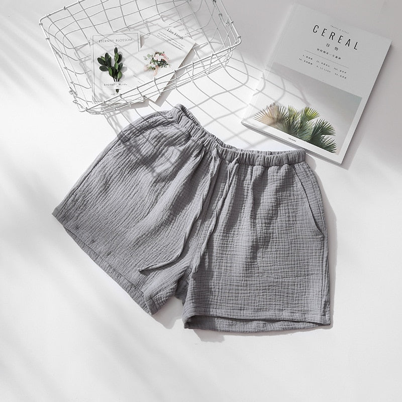 Summer Couples Sleep Pants 100% Cotton Crepe Pajama Shorts Men and Women Elastic Waist Sleep Bottoms Solid Sleeping Shorts 2020