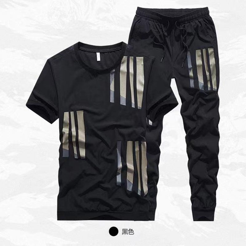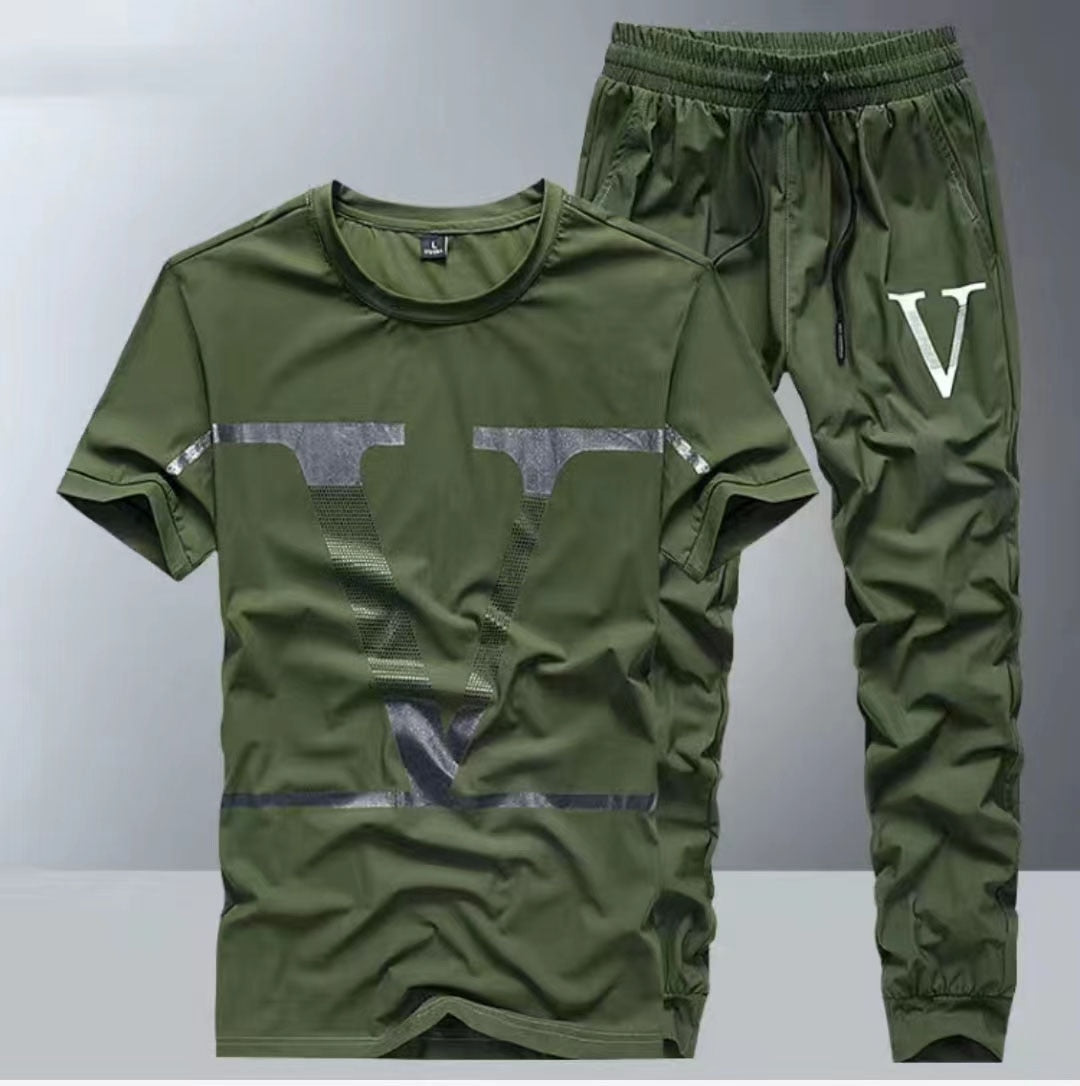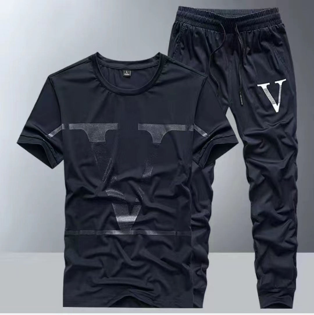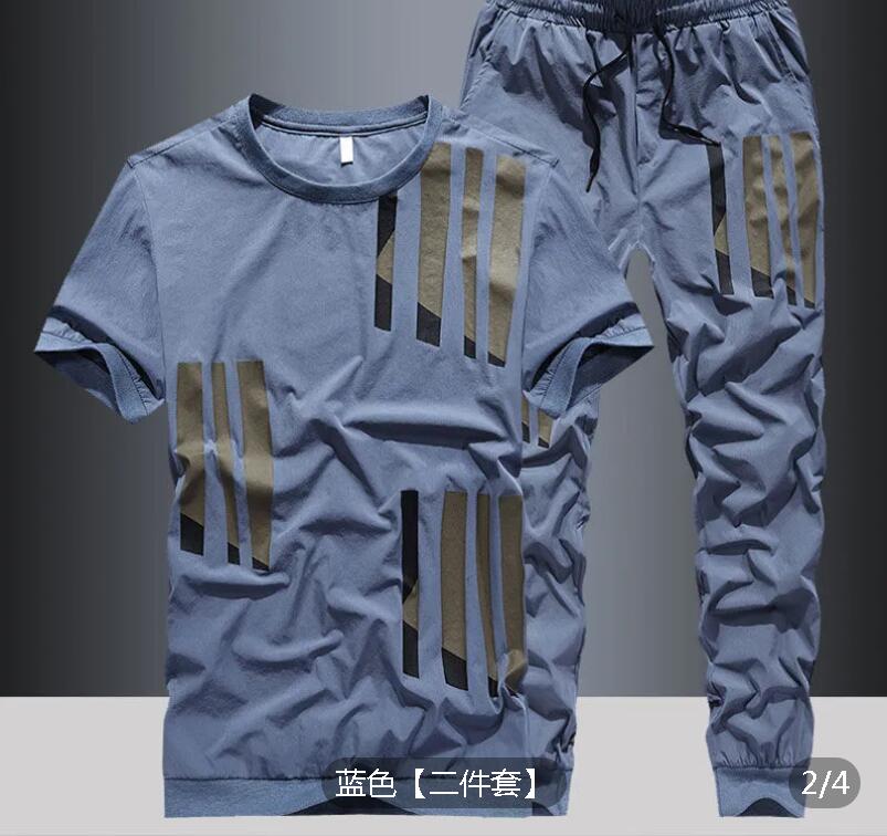 Summer new ice silk suit male summer youth fashion brand short sleeve T-shirt male loose pants casual sportswear male