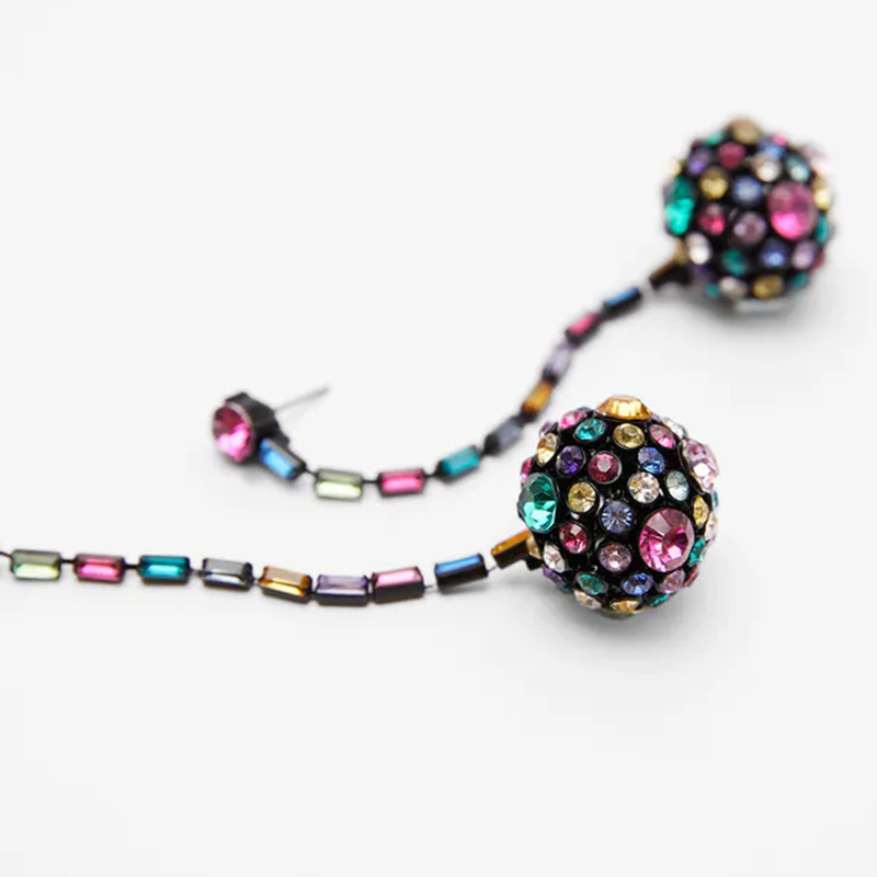 Women's Colored Glass Ball Long Rhinestone Earrings